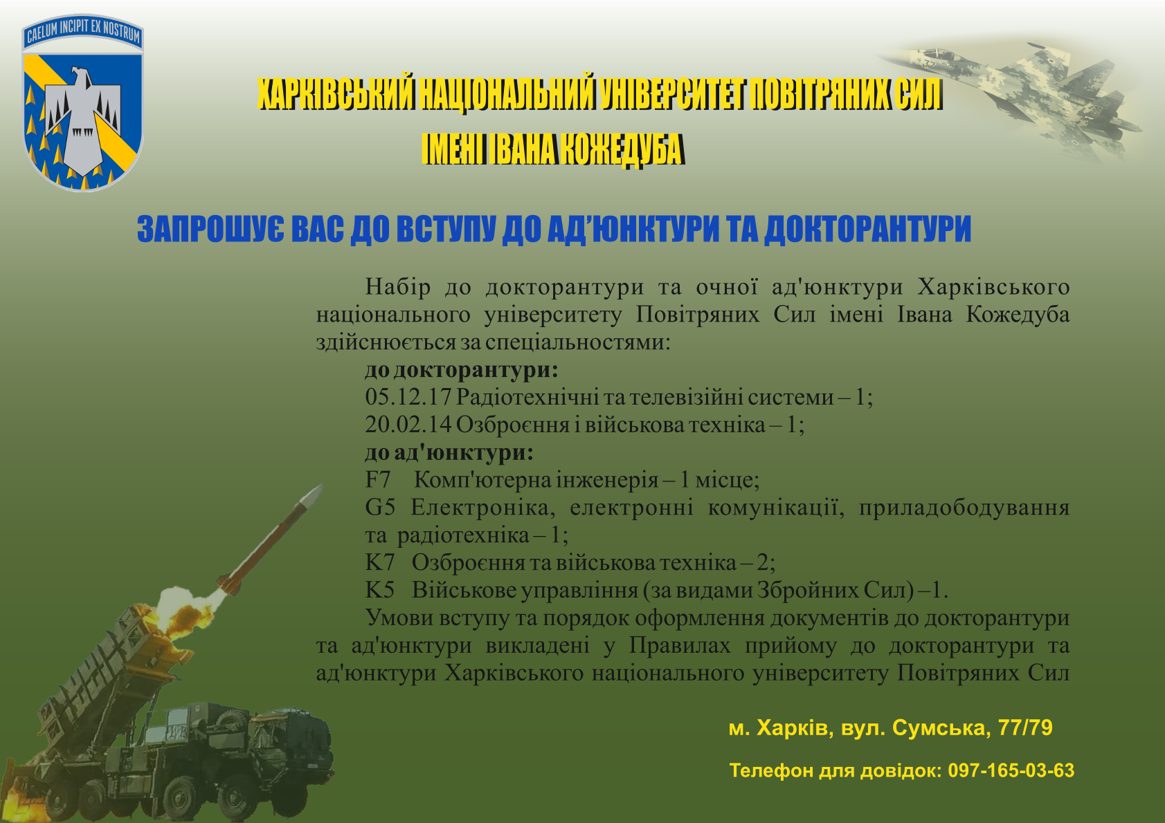 Харківський національний університет Повітряних Сил імені Івана Кожедуба це вищий військовий навчальний заклад Збройних Сил України, який за свою багаторічну історію показав себе як провідний університет з військової освіти та військової підготовки. В університеті протягом десятків років формувалась наука світового рівня, вищий навчальний заклад проводить фундаментальні та прикладні наукові дослідження, готує кваліфікованих військовослужбовців і цивільних фахівців.