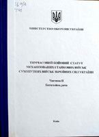 Тимчасовий бойовий статут механізованих і танкових військ Сухопутних військ Збройних Сил України. Ч. 2. Батальйон, рота [Текст] : затв. наказ командувача Сухопутних військ Зброй-них Сил України від 01.04.2016 № 167 / М-во оборони України. – Київ, 2016. – 315 с. : іл., табл. – Дод. – Бібліогр.: 314-315 (29 назв). |