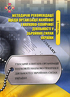 Методичні рекомендації щодо організації наукової і науково-технічної діяльності у Збройних Силах України [Текст] : [посібник : у 17 ч.]. Ч. 1. Глосарій з питань організації наукової і науково-технічної діяльності у Збройних Силах України / М-во оборони України. – [Київ], 2020. – 29 с.