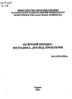 Освітній процес: методика, досвід, проблеми. № 1 (155) 2020 р. [Текст] : навч.-метод. зб. / [гол. ред. К. Васюта] ; М-во оборони України, Харків. нац. ун-т Повітряних Сил ім. І. Кожедуба. – Харків : ХНУПС, 2021. – 97 с. : іл., табл. – Бібліогр.: наприкінці ст.