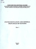 Instrumentation and qeneral principles of sen-sors. Part 1 [Текст] : навч. посіб. / В. Б. Коно-нов, А. М. Науменко, О. В. Коваль et al. ; М-во оборони України, Харків. нац. ун-т Повітряних Сил ім. І. Кожедуба. – Харків, 2018. – 62 с : іл., табл. |