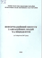 Інформаційний випуск з авіаційних подій та інцидентів за 2 півріччя 2017 року [Текст] /М-во оборони України, Повітряні Сили Збройних Сил України. – [Б. м.], 2018. – 76 с. : табл. |