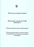 Військовий стандарт 04.113.001. (Видання 1). Пошуково-рятувальне забезпечення. Система підготовки льотного складу до виживання в умовах автономного існування [Текст] :ВСТ 04.113.001-2018(01) / М-во оборони України, [Харків. нац. ун-т Повітряних Сил ім. І. Кожедуба ; розроб. В. Б. Бзот, І. В. Богушев, Є. І. Жилін та ін.]. – [Б. м., 2018]. – 35 с. |