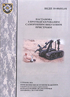 Настанова з протидії керованим саморобним вибуховим пристроям [Текст] : ВКДП 10-00(01).01 : військ. кер. деталіз. публ. / Командування Сил підтримки ЗСУ. – [Київ, 2021]. – 33 с. – У вих. дан.: серпень 2021.