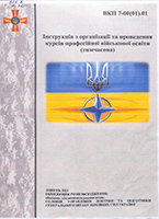 Інструкція з організації та проведення курсів професійної військової освіти (тимчасова) [Текст] : ВКП 7-00(01).01 : військ. кер. публ. / Гол. упр. доктрин та підгот. ГШ ЗСУ. – [Київ, 2021]. – 36 арк. – У вих. дан.: липень 2021. – Дод. 1-4.