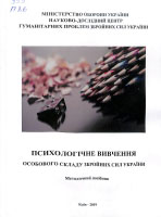 Психологічне вивчення особового складу Збройних Сил України [Текст] : метод.посіб. / [О. М. Кокун, Н. А. Агаєв, І. О. Пішко та ін.] ; М-во оборони України, Н.-д. центр гуманітар. проблем Збройних Сил України. – Київ, 2019. – 285 с. : іл., табл. – Дод. 1-32. – Бібліогр.: с. 131-135 (49 назв).