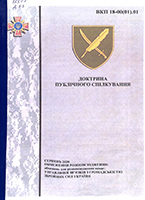 Доктрина публічного спілкування [Текст] : ВКП-18(00).01 : військ. кер. публ. / Упр. зв’язків з громадськістю ЗСУ. – [Київ, 2020]. – 18 арк. – У вих. дан.: серпень 2020.
