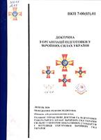 Доктрина з організації підготовки у Збройних Силах України [Текст] : ВКП 7-00(03).01 : військ. кер. публ. / Гол. упр. доктрин та підгот. ГШ ЗСУ, Центр операт. стандартів і методики підгот. ЗСУ. – [Київ, 2020]. – 34 арк. – У вих. дан.: липень 2020.