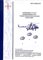 Бойовий статут Повітряних Сил «Пошуково-рятувальні операції» [Текст] : БП 3-38(01).01 : [бойова публ.] / Командування підгот. командування ПС ЗСУ, ХНУПС. – [Вінниця, 2020]. – 33 арк. – У вих. дан.: грудень 2020.