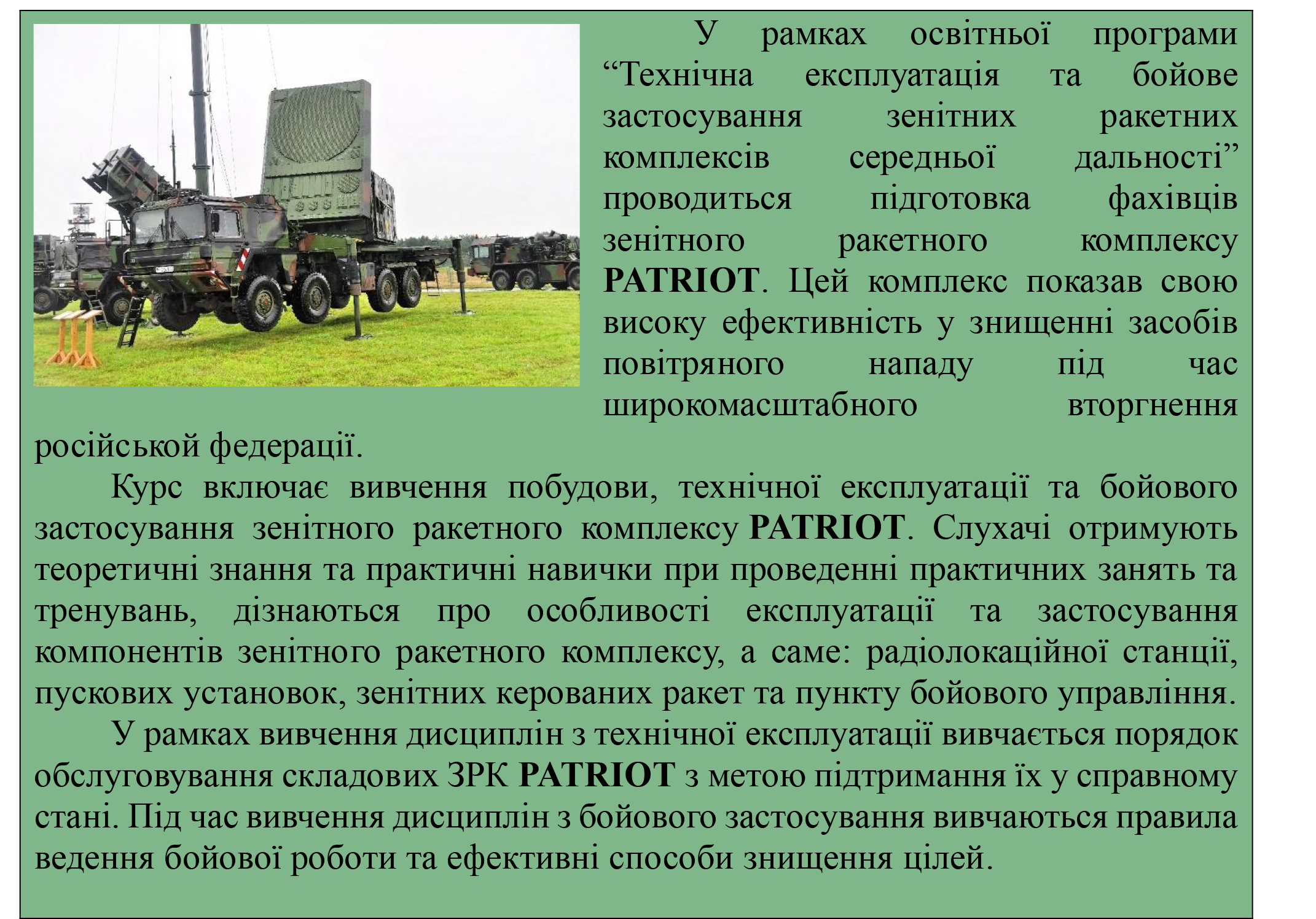“Technical operation and combat use of medium-range anti-aircraft missile systems” specialists of the PATRIOT anti-aircraft missile system PATRIOT