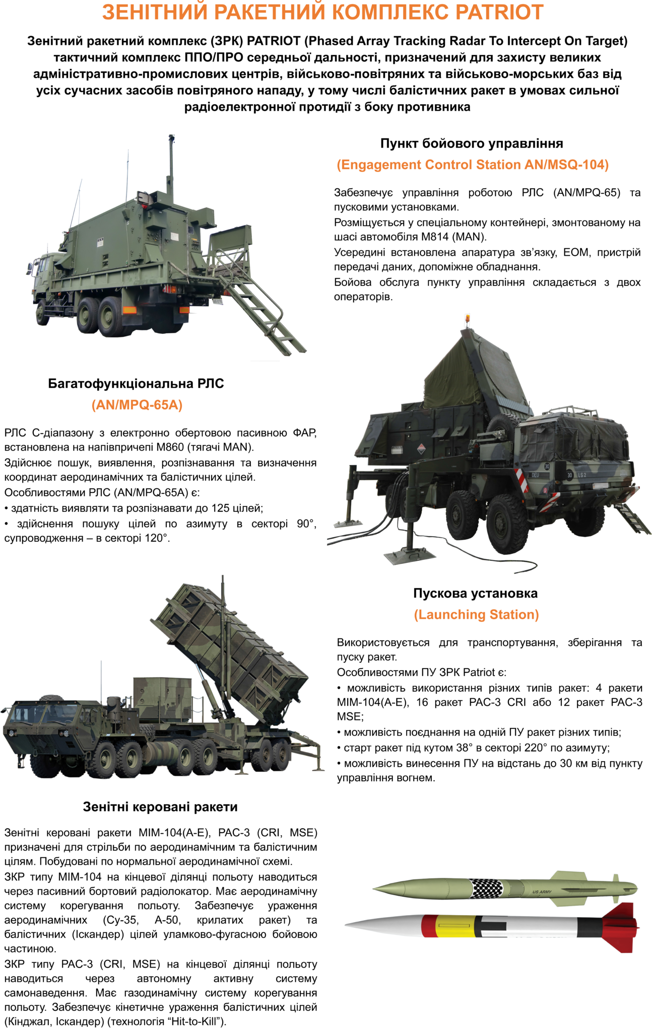 Висота ураження цілей: 0,025- 27 км.