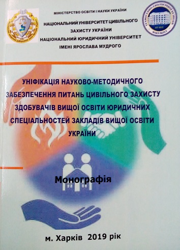 Уніфікація науково-методичного забезпечення питань цивільного захисту здобувачів вищої освіти юридичних спеціальностей закладів вищої освіти: монографія. – Х.: ФОП Бровін О.В., 2019. – 244 с.